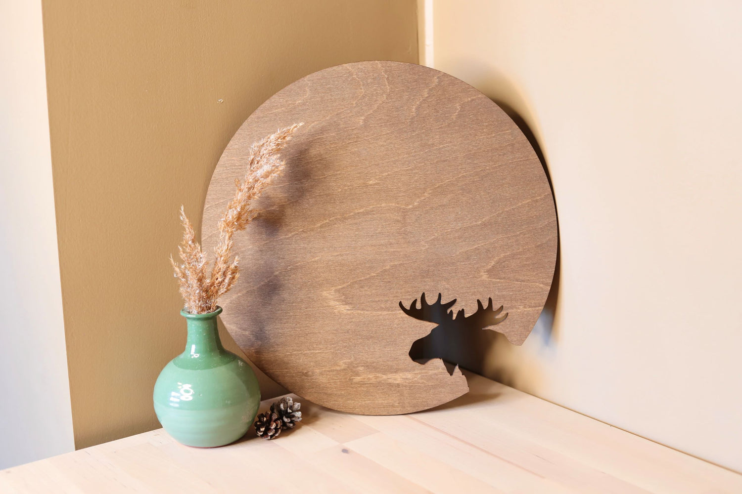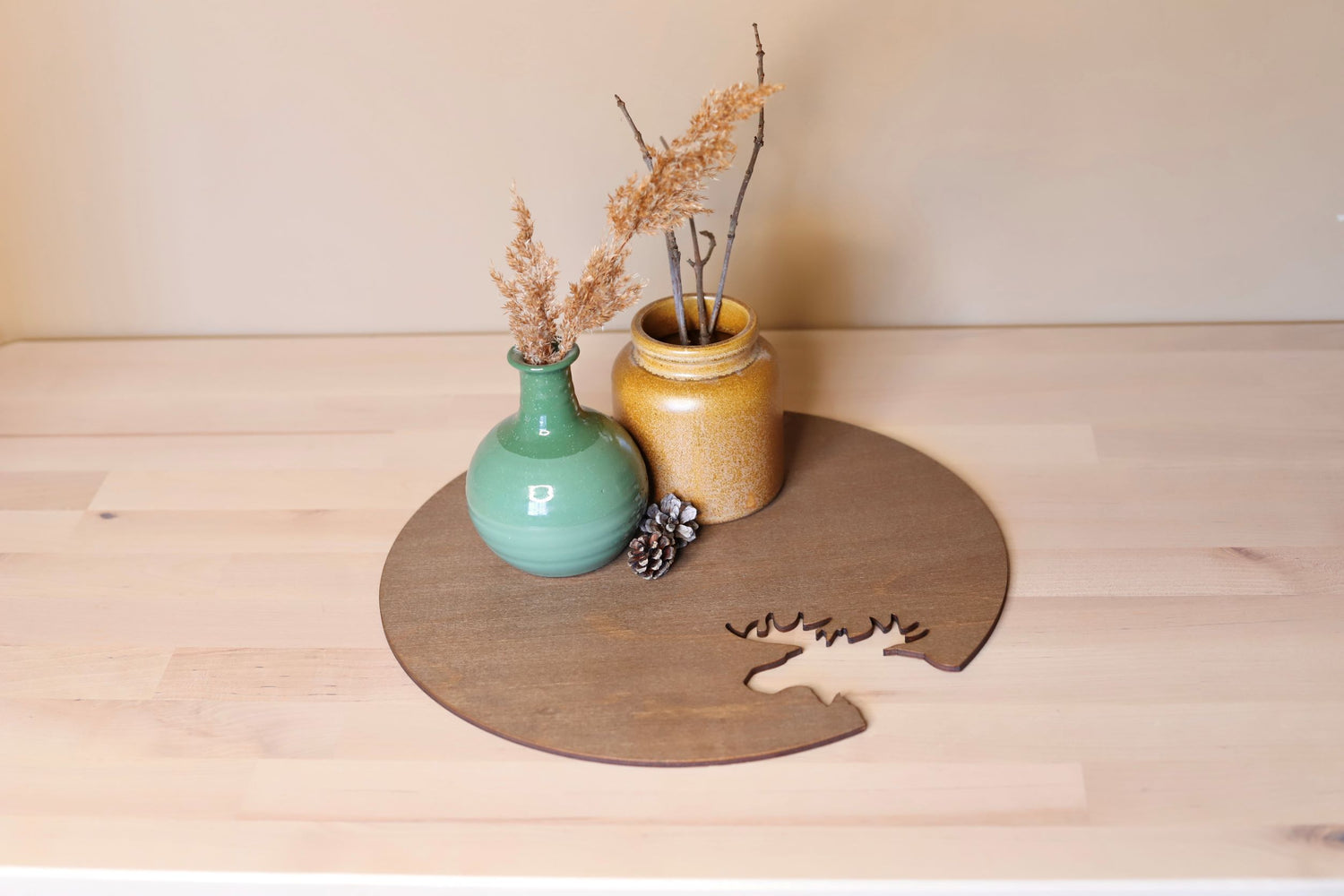 Skap en lun og naturlig atmosfære i hjemmet med dette vakre dekorfatet med utskåret elg-motiv. Fatet er laget av solid bjørkefiner og kombinerer funksjonalitet med tidløs, norsk design. Det naturlige uttrykket gjør det perfekt som base for lys, vaser eller små dekorasjoner – like fint på stuebordet som på spisebordet.