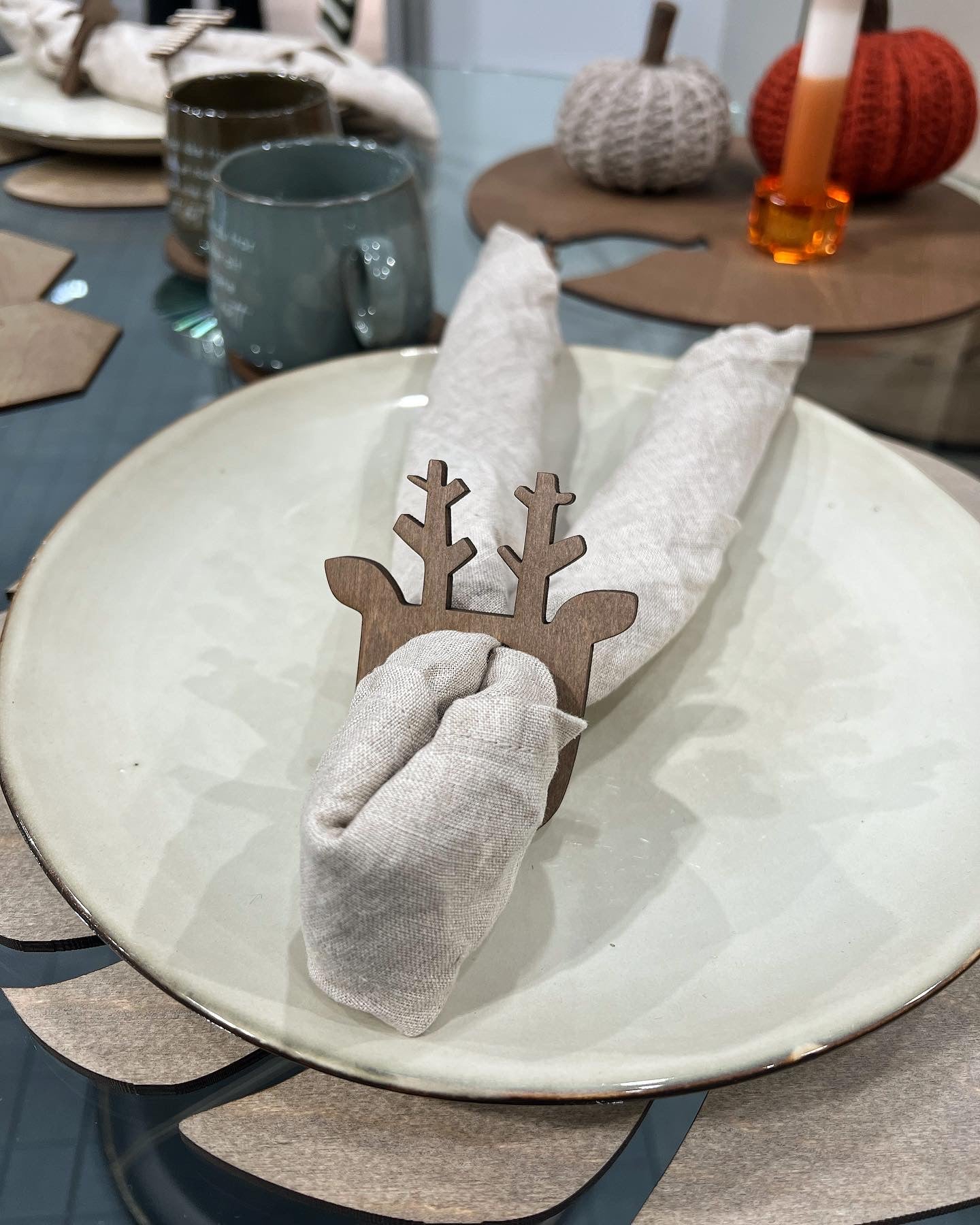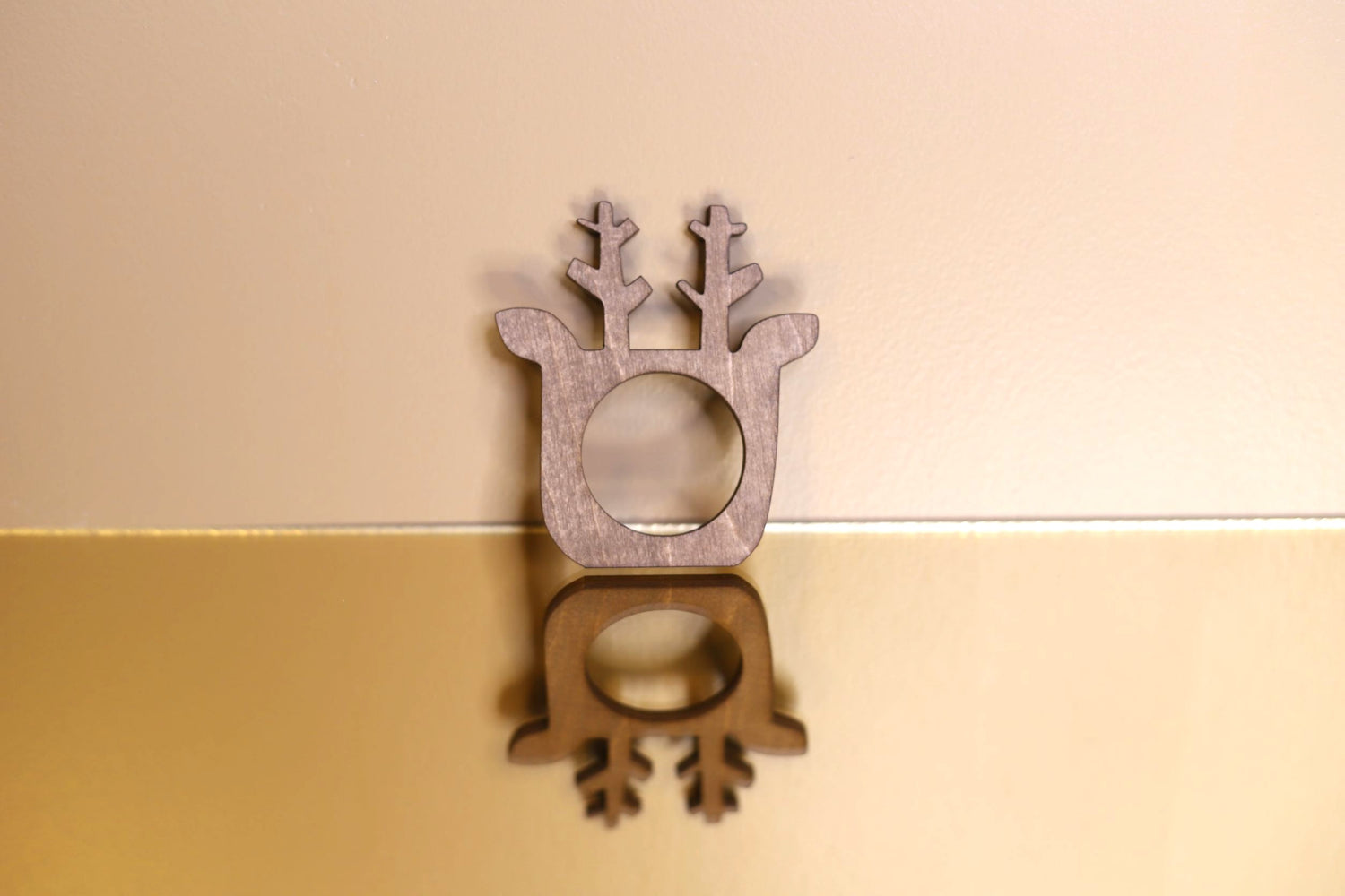 En elegant serviettring med reinsdyrmotiv som setter prikken over i-en på borddekkingen. Det enkle og tidløse designet i tre gir et lunt og naturlig uttrykk.