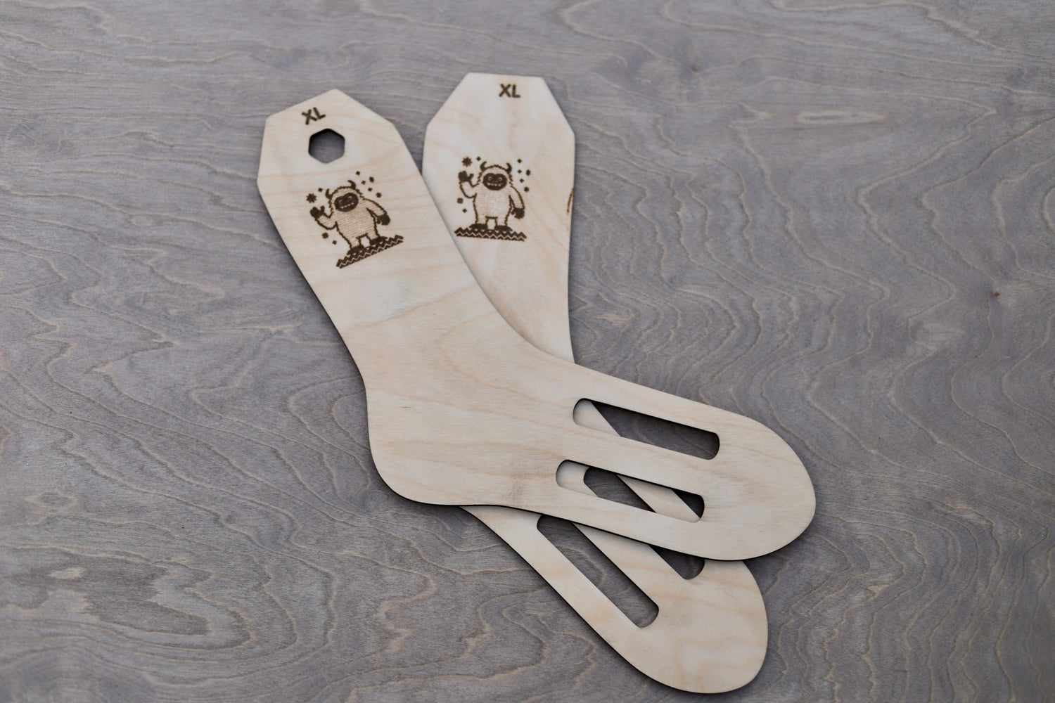 Gi de ferdigstrikkede sokkene dine den formen de fortjener! Våre eksklusive sokkeblokkere er laget av 4 mm høykvalitets kryssfiner og behandlet med en beskyttende olje som gjør dem motstandsdyktige mot fukt og daglig bruk. Overflaten er superglatt, slik at sokkene glir lett på og av uten å hekte seg fast i fibrene.
